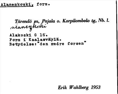 Information om ortnamnet Alanenkoski