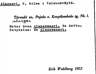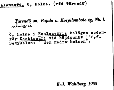 Information om ortnamnet Alasaari