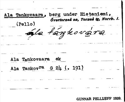 Information om ortnamnet Ala Tankovaara