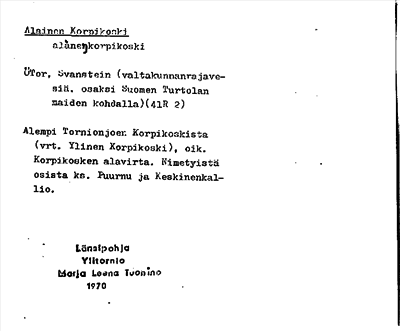 Information om ortnamnet Alainen Korpikoski