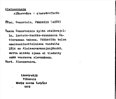 Information om ortnamnet Alainenvaara