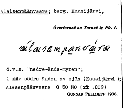 Information om ortnamnet Alaisenpäänvaara