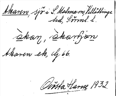 Information om ortnamnet Akaren