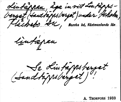 Information om ortnamnet Lintäppan