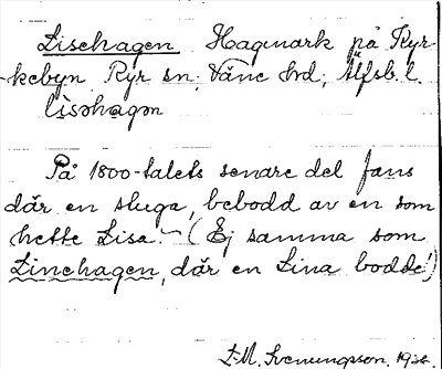 Information om ortnamnet Lisehagen