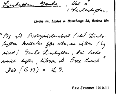 Information om ortnamnet Linshyttan, Gamla