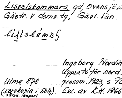 Information om arkivposten Lisselskommars