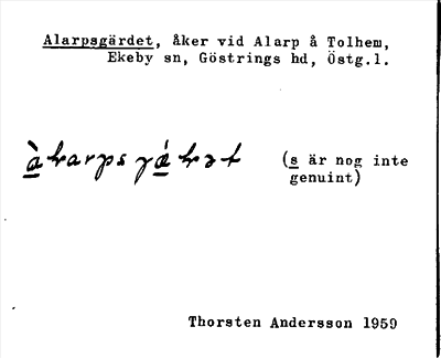 Information om ortnamnet Alarpsgärdet