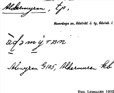 Information om ortnamnet Aldermyren