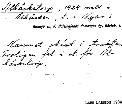 Information om ortnamnet Albäckstorp