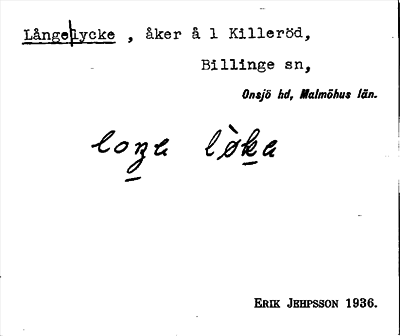 Information om ortnamnet Långe lycke