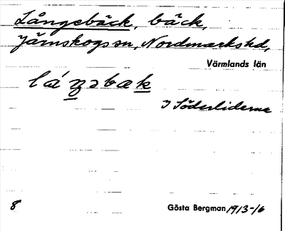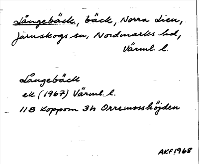 Bild på arkivkortet för arkivposten Långebäck