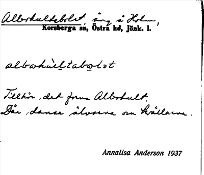 Information om ortnamnet Albohultebolet