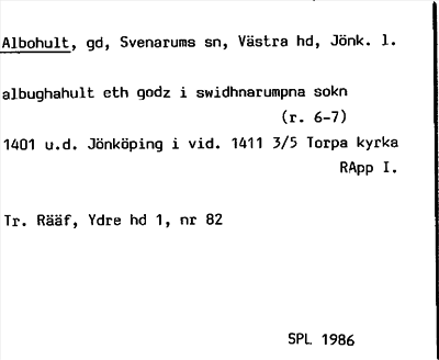 Information om ortnamnet Albohult