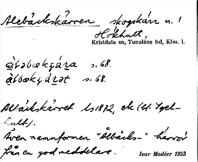 Information om ortnamnet Alebäckskärren