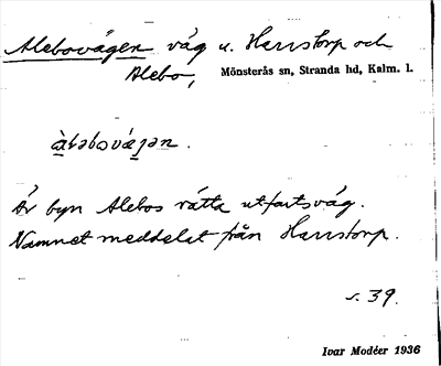 Information om ortnamnet Alebovägen