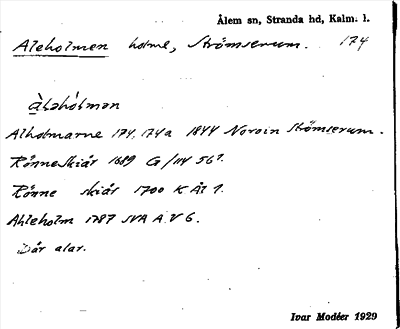 Information om ortnamnet Aleholmen
