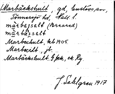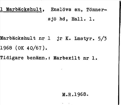 Information om arkivposten Marbäckshult