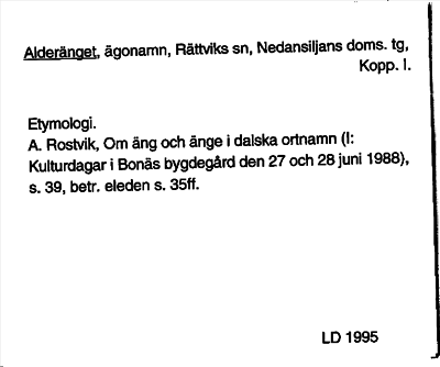 Information om ortnamnet Alderänget