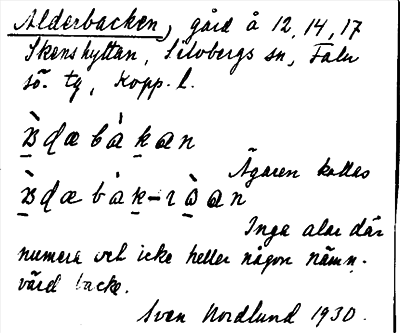 Information om ortnamnet Alderbacken