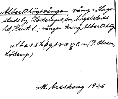 Information om ortnamnet Albertshögsvången