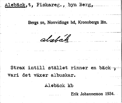 Information om ortnamnet Alebäck