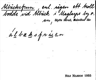 Information om ortnamnet Albäcksfrun