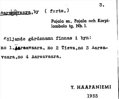 Information om ortnamnet Aaraaevaara