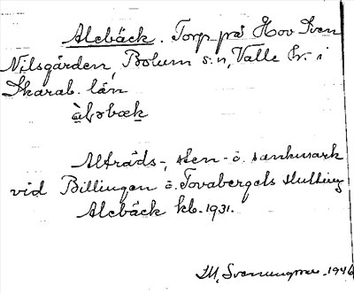 Information om ortnamnet Alebäck