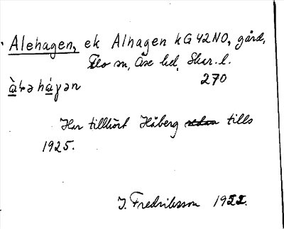 Information om ortnamnet Alehagen