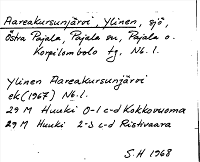 Information om ortnamnet Aareakursunjärvi, Ylinen