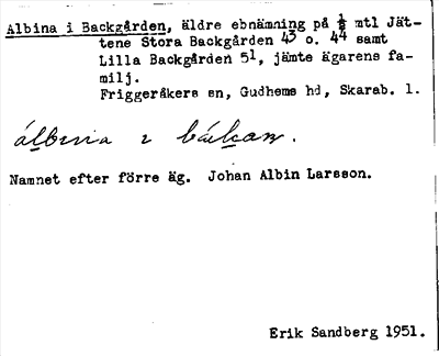 Information om ortnamnet Albina i Backgården
