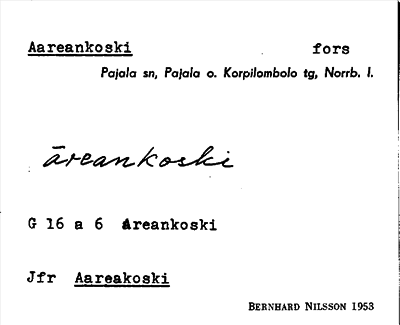 Information om ortnamnet Aareankoski