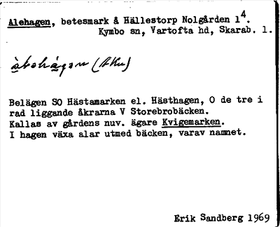Information om ortnamnet Alehagen