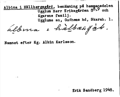 Information om ortnamnet Albina i Hällbergsgård