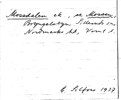 Information om arkivposten Mossdalen, se Mossen