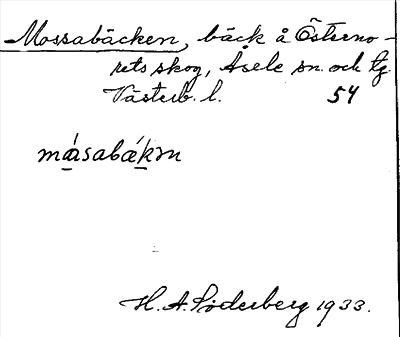 Information om ortnamnet Mossabäcken