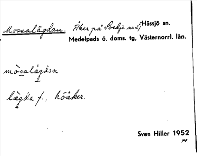 Information om arkivposten Mossalägdan