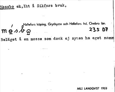 Information om ortnamnet Mossbo