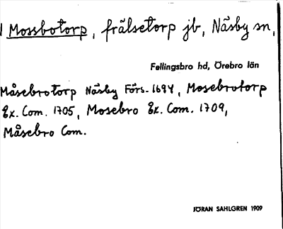 Information om arkivposten Mossbotorp