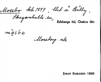 Information om arkivposten Mossbo