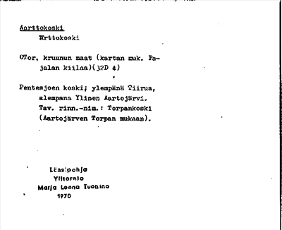 Information om ortnamnet Aarttokoski