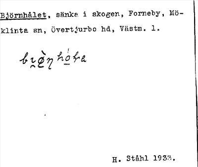 Information om ortnamnet Björnhålet