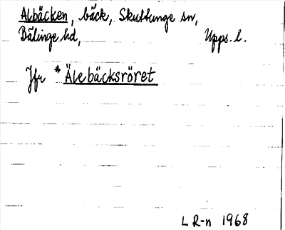 Information om ortnamnet Albäcken, jfr Älebäcksröret