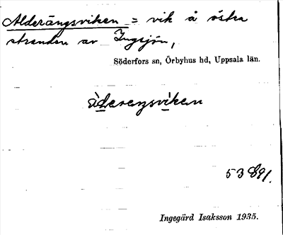 Information om ortnamnet Alderängsviken
