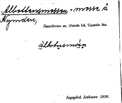 Information om ortnamnet Albottensmossen