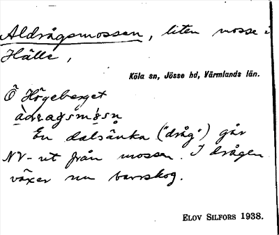 Information om ortnamnet Aldrågsmossen