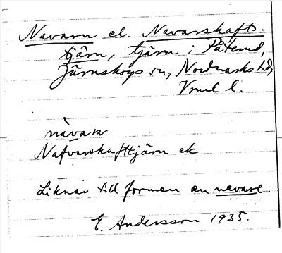 Information om ortnamnet Navarn el. Navarsskaftstjärn