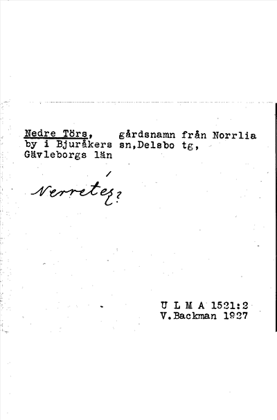 Information om ortnamnet Nedre Törs