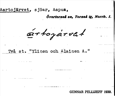Information om ortnamnet Aartojärvet